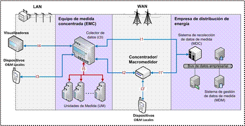 Interfaz I1: comunica el EMC y el concentrador con el centro de gestión.
