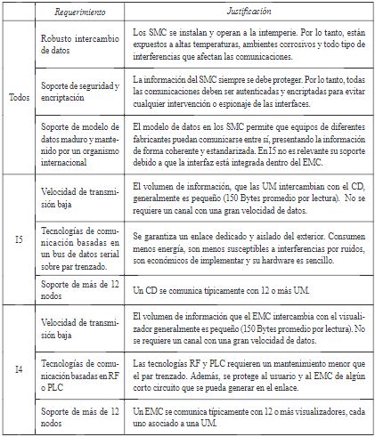 Para lograr reducir las pérdidas no técnicas de energía eléctrica, los SMC deben cumplir una serie de requerimientos especiales de comunicación. Dichos requerimientos se definen en la tabla 1. Como se observa, en todos los casos se le da importancia a garantizar un intercambio de datos robusto, seguro y soportado bajo un modelo de datos.