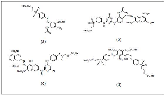 La presencia de los colorantes en agua, aún en muy bajas concentraciones, es notoria y no deseable. A través de la estructura química los colorantes son clasificados como catiónicos, aniónicos y no iónico. De acuerdo con el Índice Internacional del Color (CI, por sus siglas en inglés) y por su forma de aplicación, los colorantes se clasifican como: ácidos, básicos, directos, dispersos, con brillo fluorescente, para piel, mordentes, pigmentos, reactivos, azufrados y cuba. El grupo funcional responsable de impartir el color a la molécula se denomina cromóforo (figura 1), y es considerado por el CI para clasificar a los colorantes como azoicos, nitrosos, nitro, antraquinona, triarilmetano, metino, azina, oxacina, índigo, ftalocianina, estilbeno, xanteno, acridina, quinolina, triazol y tintes de complejos metálicos.