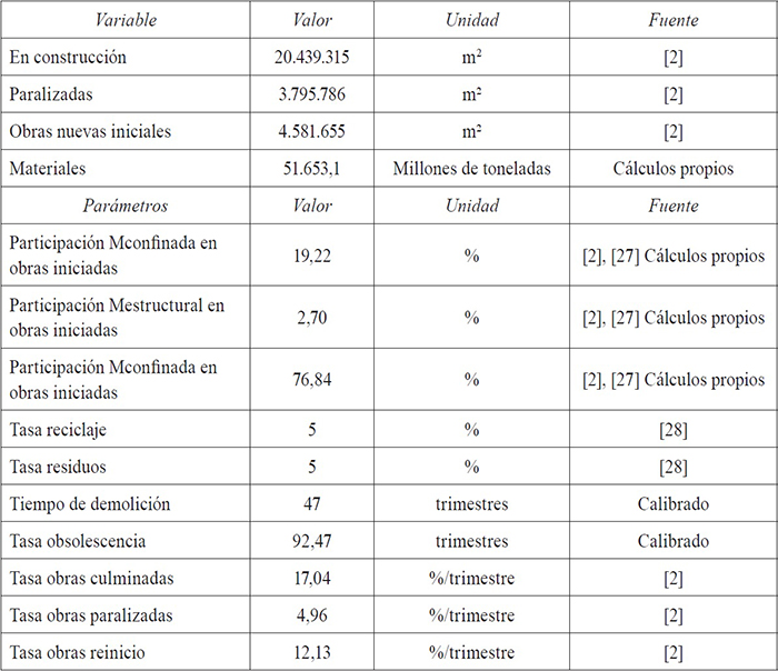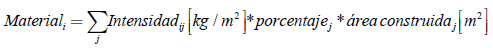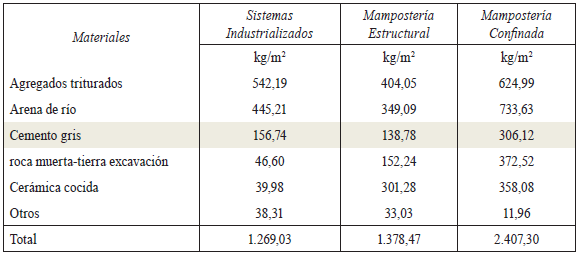 Con el fin de estimar las cantidades de materiales de construcción demandados en el periodo de análisis, se usan los valores de la tabla 5 donde se detalla el consumo de cada material (en kg/m2) para los principales sistemas constructivos usados en Colombia.