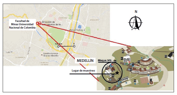 La muestra de suelo para la ejecución de los ensayos se extrajo de una vertiente; específicamente el material fue tomado de la zona noroccidental del municipio de Medellín en predios de la Facultad de Minas de la Universidad Nacional (coordenadas 6°16´30.31´´N-75°35´32.87´´O; altitud de 1554 msnm) (figura 1). En el sector, la precipitación y temperatura promedio anual son de 1571 mm y 24 °C, respectivamente [13].
