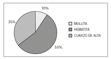 Se considera que parte de la caolinita existente en la muestra natural se transformó en mullita [34], mientras que el cuarzo de baja se transformó en un cuarzo de alta [35] y la goethita dio lugar a la hematita [36].