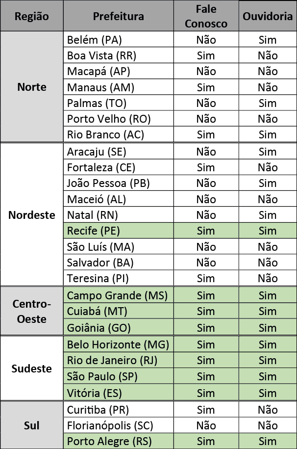Observa-se, de forma geral, que todas as capitais das Regiões Centro-oeste e Sudeste disponibilizam as duas ferramentas; uma das capitais das Regiões Nordeste e Sul disponibilizam as duas ferramentas e que as capitais da Região Norte disponibilizam apenas uma das ferramentas.