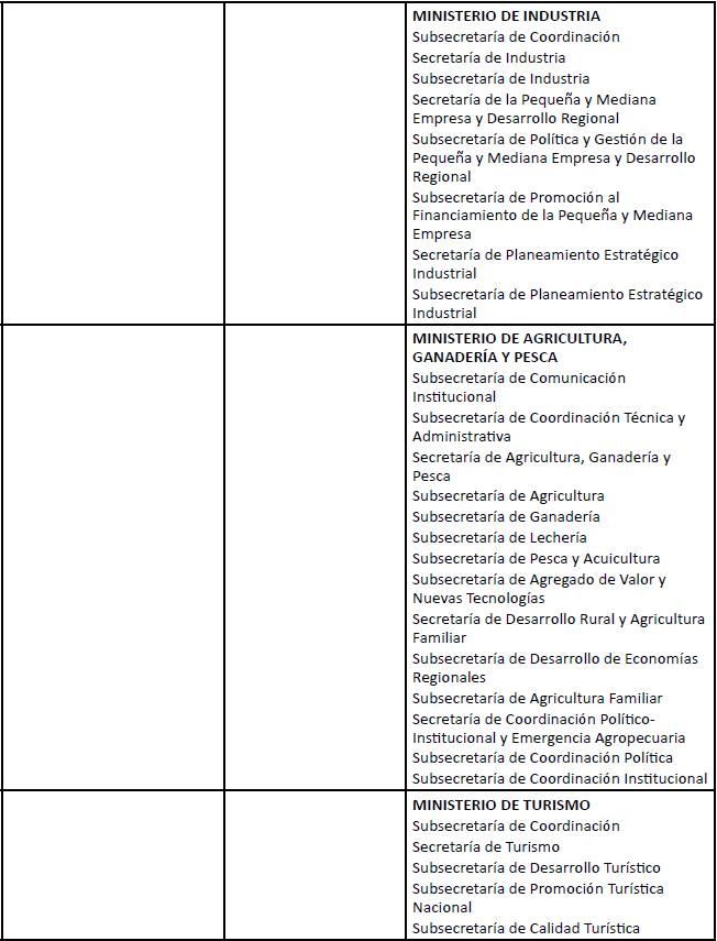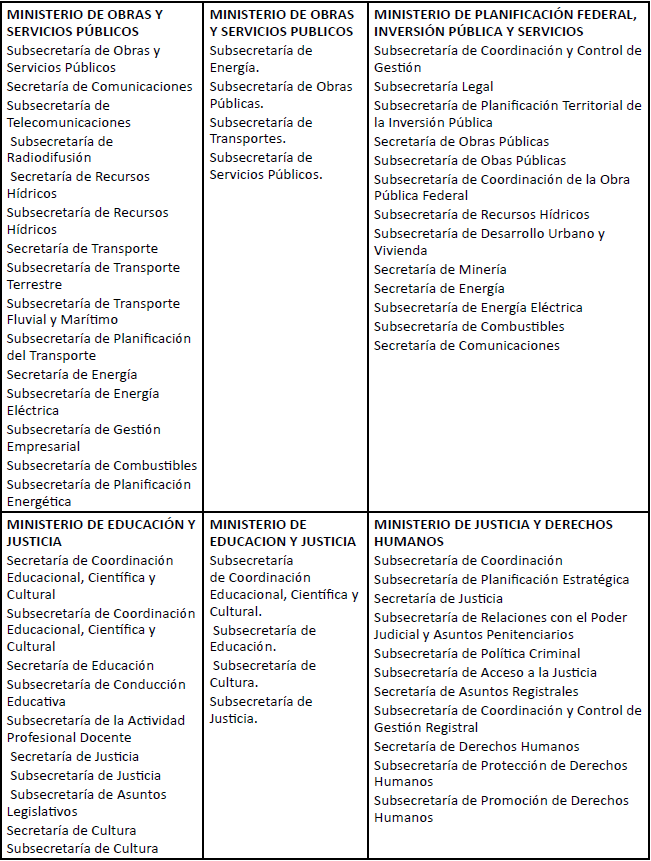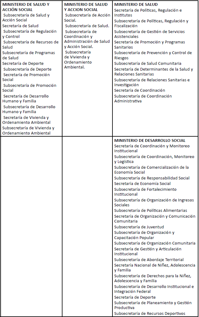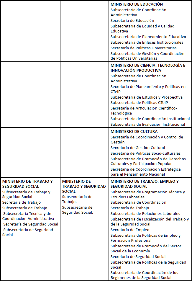 Siguiendo el planteo introducido en el presente trabajo, entendemos que esta inalteración en la estrategia acumulativa se encuentra asociada con la inexistencia de avances en la conformación de un proyecto estatal post-neoliberal. Para dar cuenta de la misma, a continuación, vamos a estudiar la evolución del esquema ministerial del Estado-Nación y las modalidades de implicación que se desprenden de la misma desde inicios de siglo 21.