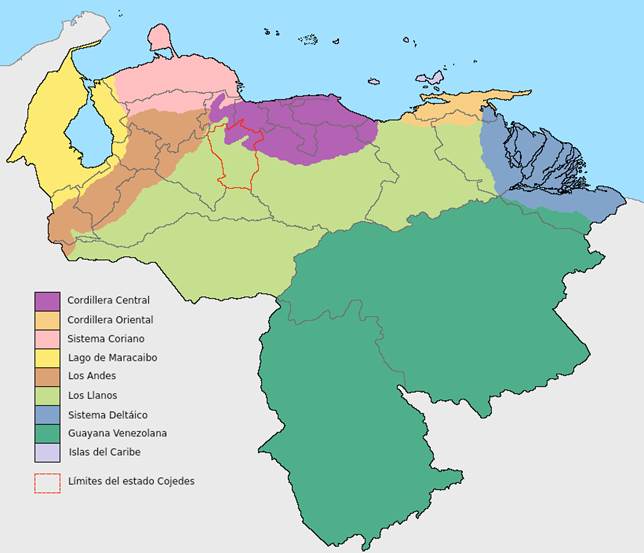Gran parte del centro y sur del estado Cojedes (Figura 1) se localiza en la región natural de Los Llanos, una biorregión del norte de América del Sur repartida entre Venezuela y Colombia, en la cuenca del río Orinoco. La zona tiene dos estaciones bien marcadas: la lluviosa y la seca, y se caracteriza por albergar extensas sabanas con clima intertropical de sabana y altas temperaturas. La vegetación está constituida por grandes extensiones de sabanas, matorrales, morichales, bosques secos y muy secos, bosques de galería, grupos compactos de vegetación boscosa (llamados localmente matas) y numerosos individuos arbóreos dispersos en las sabanas. En la mitad sur de Cojedes se encuentran una serie de filas montañosas o galeras orientadas de noreste a suroeste y cuya altura va disminuyendo de norte a sur. En el extremo norte estatal, frontera con el estado Yaracuy, está el Macizo de Nirgua (tramo más occidental de la Cordillera Central o de la Costa), que se compone de grandes valles y cerros con características climáticas y altitudinales que dan origen a bosques secos tropicales, bosques húmedos premontanos, bosques premontanos siempreverdes y sabanas. Predomina el bosque bajo; el alto ha desaparecido en muchas zonas y ha sido sustituido por herbazales, vegetación secundaria y cultivos (principalmente café y caraotas negras); bordeando los cuerpos de agua existen bosques de galería. El punto más alto se encuentra en Cerro Azul con 1 780 msnm. Según el sistema de clasificación de Holdridge, fundamentado en las zonas de vida o formaciones vegetales, podemos distinguir tres zonas de vida en el estado Cojedes: el bosque seco tropical (bs-T), que cubre la mayor parte del estado (bosques caducifolios, sabanas y matorrales espinosos); el bosque húmedo tropical (bh-T) y el bosque húmedo premontano (bh-P) que abarca las serranías del norte, en el límite con los estados Yaracuy y Carabobo (Paredes 2009).