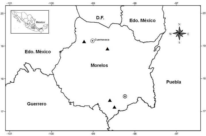 Agradecemos el apoyo brindado por la Universidad Autónoma del Estado de Morelos para la realización de los muestreos; a los pobladores de la localidad por el hospedaje y apoyo en campo, así como a los revisores por las valiosas aportaciones al manuscrito. Reconocemos la participación de P. Sierra Morales del Laboratorio Integral de Fauna Silvestre de la Unidad Académica de Ciencias Químicas de la Universidad Autónoma del Estado de Guerrero, por proporcionar el mapa de registros de la especie.
