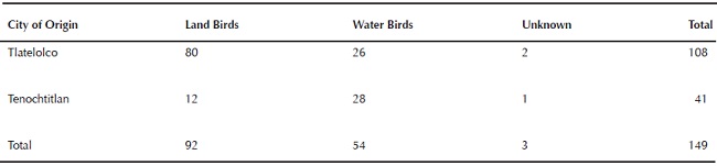Tlatelolco contributed 108 bird accounts to the Aztec language texts of the Florentine Codex, while Tenochtitlan contributed 41 (Table 1, Table 2).