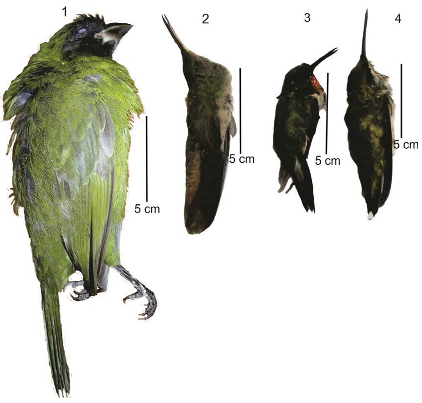Para la identificación de las especies utilizamos las guías de campo de Howell y Webb (1995), Peterson y Chalif (2008), Sibley y Allen (2000), Kaufman (2005), Dunn y Alderfer (2006) y Stokes y Stokes (2010). La clasificación y nombres científicos siguen los criterios de la Unión Americana de Ornitología (AOU 1998) y sus actualizaciones. Cada ejemplar encontrado en el área de estudio, en estado de conservación apropiado, fue depositado en la colección ornitológica de la Facultad de Ingeniería y Ciencias (FIC) de la UAT (Figura 3).