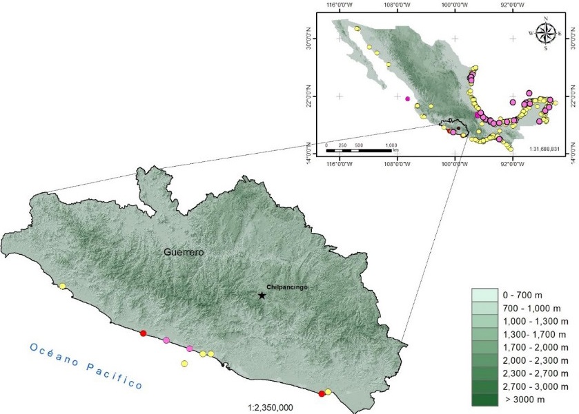 Resumen : Los registros nuevos de especies fortalecen el conocimiento de la biodiversidad y son la evidencia de que la comprensión de ésta es aún parcial, especialmente en áreas donde la diversidad es alta. Es importante seguir generando información que contribuya a robustecer la comprensión de la biota y los servicios que de ella derivan. En este estudio reportamos al charrán de Sandwich (Thalasseus sandvicensis) en dos localidades de la costa de Guerrero. Una localidad fue en Carrizal de Cinta Larga, municipio de Tecpan de Galeana, en febrero de 2010, diciembre de 2012, agosto y diciembre de 2013 y enero de 2015; y la otra en playa Casa de Piedra, municipio de Marquelia, en diciembre de 2011. La especie no está incluida en el listado avifaunístico de Guerrero. Nuestros registros confirman la presencia de la especie en la entidad.