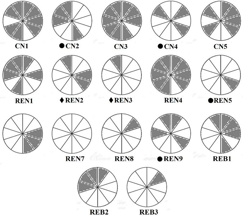 Las cajas-nido ocupadas (CN2, CN4, REN2, REN3, REN5 y REN9) estaban en sitios abiertos con vista periférica libre de entre 50 y 90% (Figura 3), aunque otras cajas-nido con buena visibilidad no fueron ocupadas (REN6, REN8, y las tres de la Reserva Benito Juárez REB1,2,3). Para otras cuatro cajas-nido disponibles nos percatamos que tuvieron una visibilidad del 10 al 40%. Comparando la ocupación de las cajas-nido disponibles encontramos que las que tuvieron una visibilidad mayor al 50% fueron ocupadas en un 71.6%, sin embargo, esta ocupación no fue mayor (X2 = 5.5, k = 4, P > 0.05).