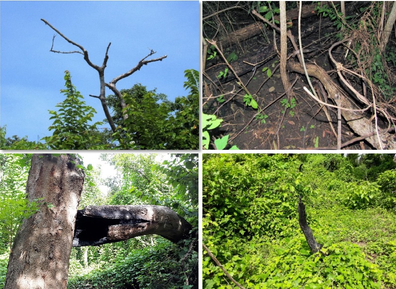 El bosque seco está catalogado como un ecosistema dependiente del fuego, puesto que los árboles que lo constituyen están muy bien adaptados a éste (Sodhi et al. 2011). Asimismo, este tipo de ecosistema se caracteriza por presentar una alta frecuencia de incendios de baja a moderada severidad (Kotliar et al. 2002, Sodhi et al. 2011). Witsberger et al. (1982) explican que el bosque seco caducifolio en el parque WTD ha sido paulatinamente invadido por vegetación típica de sabana, esto a raíz de los recurrentes incendios que ocurren en éste. Mismo comportamiento ha sido documentado por Nasi et al. (2002) para los bosques pluviales. En mi estudio ambas zonas recién afectadas por el fuego (Z2 y Z3) presentaron características de este tipo de hábitat.
