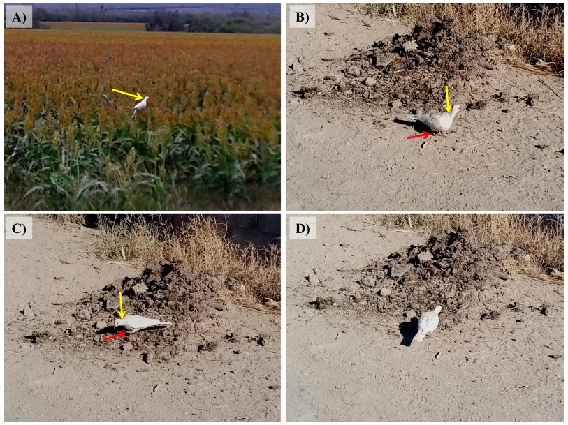 The second specimen was observed on 22 November 2020, while foraging in cow feces, inside the suburban area of the locality “La Esmeralda”, belonging to the municipality of Gómez Palacio in Durango state (25°44’19.50”N, 103°25’44.48”W; Figure 1B-D). This second individual had a white head and chest, with a faint nape crescent and some gray feathers (the usual color of the species) on its scapulars and back (Figure 1D). The individual lacked the black tips on primary feathers, and was tolerant of human presence.