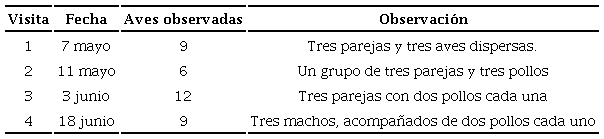 Nuestras observaciones representan el primer registro de actividad reproductiva de C. nivosus en Durango, México. Conforme avanzó la temporada, registramos menos hembras y el dominio de machos en nuestras observaciones. El cuidado de los pollos de C. nivosus es muy flexible, y en ocasiones las hembras abandonan a las crías antes de tiempo y se vuelven a aparear (Kúpan et al. 2021). Esto genera que la proporción de hembras disminuya en los sitios de anidación.