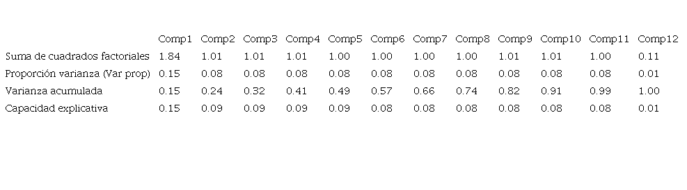 El resultado de la estimación de PCA obtuvo 12 componentes principales (ver Tabla 4).