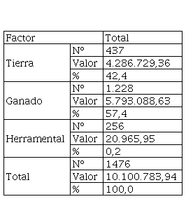 Ya ha sido evaluado en trabajos previos el valor de los componentes principales de la inversión en la región (Santilli, 2021a). Se trata del capital en tierras, del stock ganadero y avícola en sus diversas variantes y del herramental necesario para la explotación, sobre todo utensilios y maquinaria para la agricultura, la esquila y el transporte.