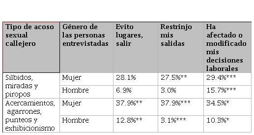 Tabla 9 – Efectos en uso de espacios públicos – por tipo de acoso sexual callejero y género
