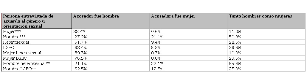 Tabla 2 Incidencia de acoso por género y orientación sexual