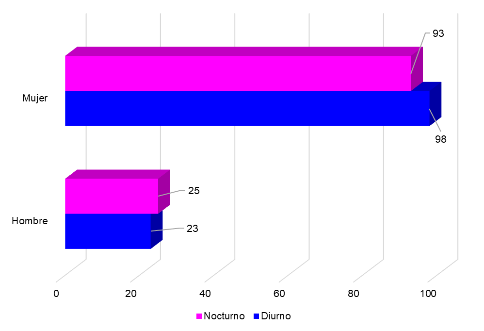 Al respecto de la matrícula de pregrado, aunque en términos generales hay más mujeres que hombres, se hallaron excepciones en la Facultad de Bellas Artes, donde los hombres superan la matrícula. Las facultades con mayor peso en matrícula son Administración de Empresas y Contabilidad, Ciencias de la Educación y Administración Pública, lo que podría estar ligado a estereotipos y roles de género, con mayor posibilidad de visibilidad en estudios por áreas del conocimiento o por facultad.