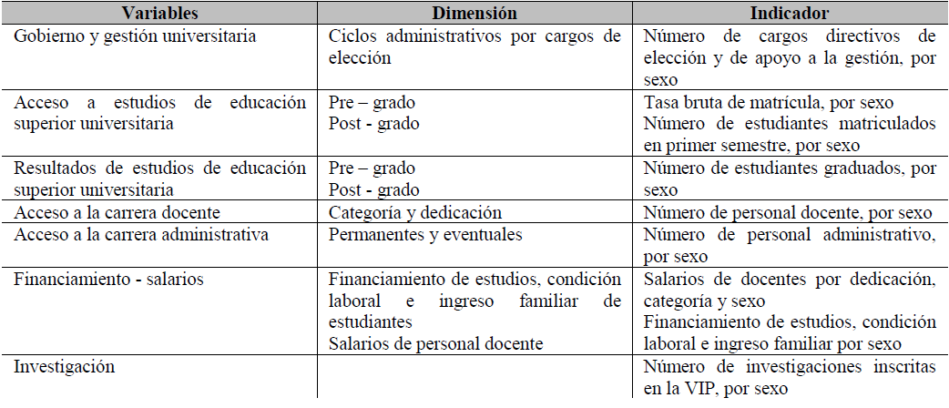 - Aunque hay esfuerzos tangibles en cuanto a incorporar la perspectiva de género (como piso mínimo) en las estadísticas institucionales, se percibe una débil integración a todos los niveles (funciones de la universidad, sedes regionales, etc.); imposibilitando en algunos casos, al no tener acceso directo a las bases de datos, el cruce de variables por sexo. Será necesario fortalecer la incorporación de la perspectiva de género en la producción estadística y así fortalecer el sistema estadístico universitario. Un sistema de información inclinado no solo a atender, sino a fortalecer la generación de estadísticas en este sentido.