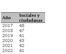 Evidencia una aprobación general de ciencias sociales del 99,1% al terminar cada uno de los años lectivos, lo que bien permitiría deducir que tales estudiantes alcanzaron el conjunto de indicadores de desempeño y competencias establecidas en los lineamientos curriculares del área, por consiguiente, recurrieron a procedimientos técnicos aprehendidos en el aula de clase que en concordancia con el MEN (2002, 2004), les posibilitó aproximarse como científicos a los eventos que estructuran su cotidianidad, sin embargo, al comparar tales resultados con los puntajes obtenidos en las pruebas Saber 11 en los mismos años (Tabla 2), paradójicamente estos demuestran que los evaluados apenas comprenden información básica de un texto y escasamente reconocen algunas funciones generales del Estado.