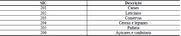 Para o desenvolvimento dessa pesquisa, a população foi composta por todas as empresas de capital aberto dos países Brasil, Chile e México, classificadas no setor de alimentos da Base de dados Thomson®. Mais precisamente, a amostra foi composta por empresas do segmento de alimentos processados, utilizando o código internacional SIC (Standard Industrial Classification), conforme descrito na Tabela 1 abaixo exposta: