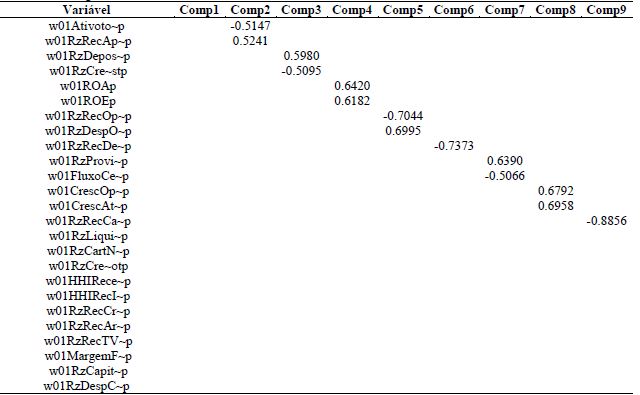 O uso da técnica de Análise de Componentes Principais para identificação de padrões e características fundamentais em dados bancários encontra respaldo na literatura. Canbas, Cabuk e Kilic (2005, p. 532) defendem ser possível utilizar a ACP com o intuito de identificar padrões de relacionamento subjacentes entre razões financeiras e o fazem buscando determinar os fatores mais importantes para explicação de mudanças nas condições financeiras dos bancos que, no limite, podem leva-los à falência.