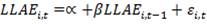 da regressão (1) que diz quanto do LLAE do período passado consegue persistir no período presente, enquanto que Previsibilidade (QIC2) é o R2 da regressão (1), ou seja, quanto LLAE do tempo t-1 está explicando o LLAE do tempo presente.