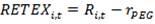 Consequentemente, o retorno em excesso de cada firma é o retorno anual menos o esperado (