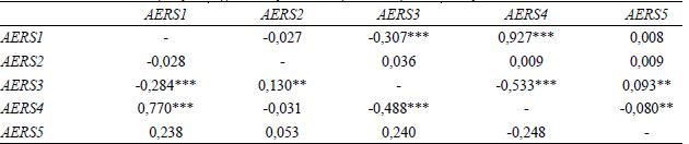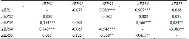 Na tabela 4 iniciam-se os resultados das relações entre o spread das médias dos retornos excesso dos portfólios formados a partir das medidas de qualidade de informação contábil. A primeira hipótese de pesquisa, a qual tinha como afirmação a relação negativa entre as medidas de qualidade e o retorno em excesso, não pode ser rejeitada, uma vez que, na tabela 4, todas as medidas, com exceção da value relevance, apresentam uma relação negativa, dado que os valores do spread do retorno em excesso (AERS) são negativos e significativos. Resultados semelhantes foram relatados por Perotti e Wagenhofer (2014), com a diferença de que todos os testes foram significativos. Além disso, os autores utilizaram a suavização de lucros cuja relação com o retorno em excesso foi positiva. No entanto, a suavização de lucros não foi abordada no escopo desta pesquisa.