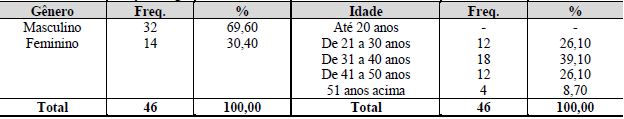 Conforme a Tabela 1, observa-se que os contadores públicos do gênero masculino são maioria na amostra analisada, o que pode dificultar as análises posteriores sobre a relação das respostas com o gênero dos respondentes. Na maioria jovens e de meia idade, havendo uma minoria de profissionais acima dos 50 anos. Tal fato pode representar a existência de uma renovação nesses profissionais, considerando que 26% são jovens (21 a 30 anos).