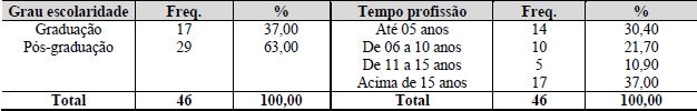 Quanto à variável Grau de Escolaridade (GRAESC), Carneiro, Pedro Filho e Souza (2014) e Nunes, Almeida e Costa (2015) destacam a importância da formação do profissional contábil diante das mudanças ocorridas no setor público brasileiro para a absorção e aplicação das normas, as dificuldades enfrentadas na implementação da nova gestão pública estavam entre o pouco treinamento ou capacitação dos servidores. Diante do exposto, infere-se que os profissionais que possuem um nível mais elevado de formação passam a ter maior percepção sobre as mudanças ocorridas na Contabilidade Pública a partir da adoção das NBC TSP’s.