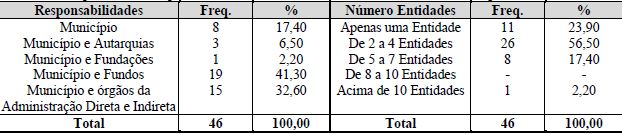 Observa-se na Tabela 3, que a maioria dos respondentes (73,9%) são responsáveis por mais de uma escrita contábil, além do município, respondem também pela escrita dos fundos e órgãos da administração direta e indireta. Sendo que 56,50% são responsáveis pela escrita contábil de 2 a 4 entidades. Porém, somente oito respondentes são responsáveis pela escrita contábil apenas do município e só 23,9% dos profissionais atuam em uma única entidade, o que demonstra que os profissionais investigados podem estar sobrecarregados, quando consideradas suas atividades rotineiras adicionadas à adaptação às NBC TSPs. Destaca-se ainda que quanto maior o número de entidades sob sua responsabilidade, maior será o tempo para implementação e adoção das NBC TSPs.