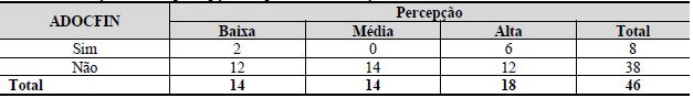Legenda: PERCEP - Percepção: 1 - Baixa; 2 - Média e 3 - Alta; GRAESC - Grau de escolaridade: 1 - Técnico; 2 - Graduação; 3 - Especialização; 4 - Mestrado e 5 - Doutorado. Fonte: Dados da pesquisa.