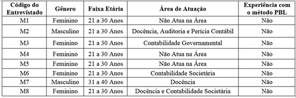 Considera-se importante ressaltar que antes da aplicação do PBL na turma do Mestrado Acadêmico, foi realizado um estudo piloto com cinco discentes da Graduação em Ciências Contábeis, selecionados por acessibilidade, objetivando aprimorar a aplicação do método, bem como o roteiro de entrevista do grupo focal, o que proporcionou benefícios como ajustes da postura dos facilitadores na aplicação do PBL e readequação de alguns questionamentos na entrevista do grupo focal.