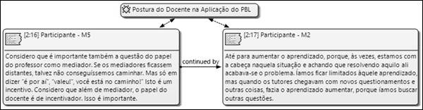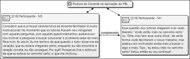 No tocante à postura do docente no processo de ensino-aprendizagem, os participantes descreveram a importância do docente como mediador nas etapas do PBL. De forma complementar, também se ressaltou a importância de o tutor incentivar os discentes na realização das atividades propostas.