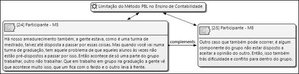 De forma complementar, os participantes M5 e M8 descrevem que a ausência de colaboração por parte dos componentes dos grupos no decorrer das atividades, assim como o respeito pela opinião dos outros, podem ser considerados fatores limitantes para o sucesso da aprendizagem.
