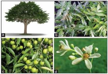 Es un árbol de rápido crecimiento con 20-23 m de altura y el tronco es recto y tiene un diámetro de alrededor de 4-5 pies (Figura 1). Las hojas son compuestas, imparipinnadas, con cada una comprendiendo 5-15 folíolos. Sus frutos son drupas verdes que se vuelven de color amarillo dorado al madurar en los meses de junio a agosto (Alzohairy, 2016). Las flores son aromáticas (Chaguthi et al., 2018), de naturaleza bisexual y de color amarillo pálido y blanco (Quraishi et al., 2018).