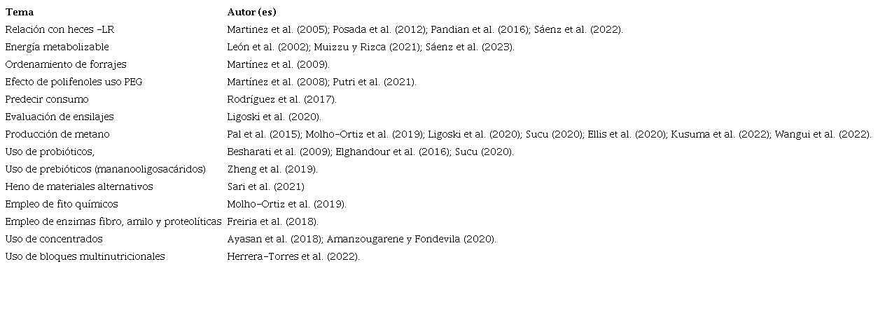 En trabajos comparativos entre heces de vacas y líquido ruminal, Akhter et al. (1999) concluyen que las primeras pueden ser una alternativa a los segundos en la evaluación de la digestibilidad in vitro de forrajes. Resultados similares fueron publicados por Martínez et al. (2008); Sáenz et al. (2022).