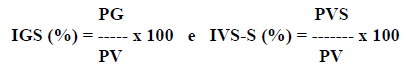 Se calculó el índice gonadosomático (IGS) (Ferrer, 1988) para determinar la madurez de las gónadas y el índice vesículas seminales-somático (IVS-S) (Viveiros, Eding y Komen, 2001) mediante las fórmulas: