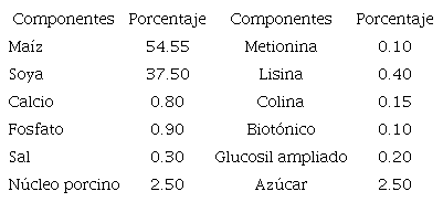 Los criterios en relación a los requerimientos nutricionales por categorías en las producciones porcinas se han establecido bajo condiciones de alimentación, cruzamiento racial y tenencia propios de cada país, por lo que difieren al momento de compararlos. En el caso de Cuba se ha normado que a los cerdos en crecimiento con un peso entre 5 - 10 kg debe proporcionárseles concentrados con un 23,70 % de proteína bruta. Valor que irá disminuyendo a medida que los animales incrementen su peso (Macías et al., 2015). El suministrado por el fabricante para estos experimentos no cumplía el requisito. Algo que, con frecuencia, ocurre con los alimentos empleados en esta etapa como se verá a continuación.