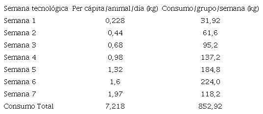 Blanco et al. (2017), en una investigación similar en la que aplicaron el biopreparado IH-plus®, desarrollado a partir de un cultivo madre igual al empleado en esta experiencia, lograron parámetros productivos (incremento del peso vivo, ganancia media diaria y conversión alimentaria) significativamente superiores a los alcanzados en el grupo control. Se ofertaron tres raciones diarias y la mezcla del concentrado con el IH-plus® se realizó en seco previo a su suministro a los animales.