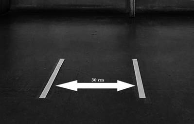 Para realizar la PSL, se requiere un cronómetro y dos marcas longitudinales con cinta adhesiva, separadas a 30 centímetros una de la otra (Figura 1).7 A pesar de no haber consenso en la literatura, se sugiere utilizar calzado acorde y realizar la prueba sobre superficie antideslizante.8