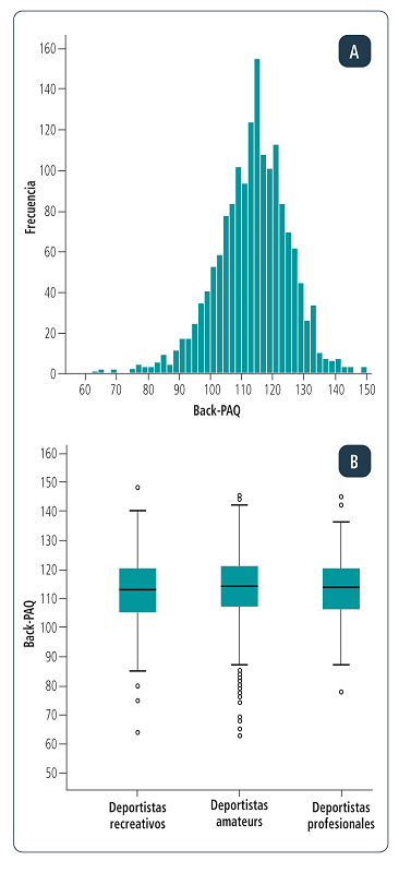 Un total de 507 (31,9%) atletas reportaron dolor de espalda actual. La puntuación mediana del Back-PAQ para este grupo fue 115 (RIQ 108 - 121). Los atletas que informaron haber tenido dolor en el pasado y los que informaron no haber tenido nunca dolor de espalda mostraron una puntuación media de Back-PAQ de 113 (RIQ 105 - 120) y 114 (RIQ 107 - 121), respectivamente. Al comparar el puntaje total obtenido entre los tres grupos según la experiencia del dolor de espalda, las diferencias fueron estadísticamente significativas (p <0,01). El análisis post hoc reveló diferencias estadísticamente significativas entre los grupos con dolor lumbar previo y dolor lumbar actual (p <0,01). No se observaron diferencias al comparar el grupo de atletas que nunca tuvieron dolor con los grupos de atletas que informaron dolor lumbar actual o previo (p = 0,58 y p = 0,32, respectivamente).