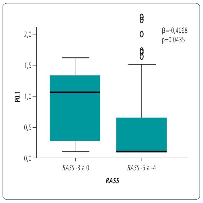 Se identificó una asociación inversamente proporcional entre la P0.1 y la RASS (β=-0,4068 y p=0,0435) (Figura 2).