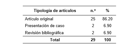 Se observa en la tabla 3 que, según la tipología de artículo, se publicaron más originales.
