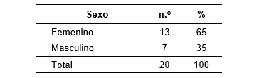 Se encontró una mayor representación de pacientes del sexo femenino con un 65 % (Tabla 2).