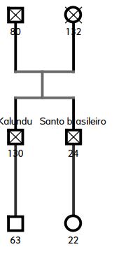 Diferentemente da sua mãe, que tinha calundus, o pai de Tia seus irmãos, foi “sentar no loando” — expressão que, literalmente, sigterapêutica de invocação dos espíritos, dito dissakela —, os calundus pegaram no irmão mais velho dele, André (130), o pai do Ti Betinho diferente. O pai de umbanda mandou chamar os pais, ou seja, os avôs de América, D. de F. (80) e B. (132), e disse: