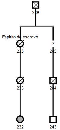 O bisavô de Margarida (239), pai da avó materna (235), tinha - da) apresentava um espírito de escravo que vinha do Brasil. A avó de apresentava um espírito com essas mesmas características, próprias ao seu pai biológico.