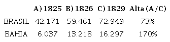 Conforme a Tabela 3 adiante, os números do comércio negreiro escalaram entre 1825, um ano antes do tratado anglo-brasileiro, e 1829, véspera da anunciada proibição. Já no ano do tratado (1826) as importações deram um salto em relação ao ano anterior. No período 1825-1829 a alta seria de 73% para todo o Brasil, mas 170% para a Bahia. Contribuiu para o boom importador, além da oferta abundante e preços módicos na África, a boa fase dos negócios do açúcar, carro-chefe da economia baiana. A produção e a exportação do produto ascenderam consistentemente até meados do século. Na década de 1820 foram criados 110 novos engenhos e na década seguinte, 190. Na véspera da proibição definitiva do tráfico, em 1850, os engenhos matriculados passavam de 700, e continuariam a se multiplicar, embora a um ritmo menor. Se na Bahia o tráfico servia sobretudo para alimentar a máquina escravista dos engenhos, Salvador era peça fundamental de sua engrenagem.18