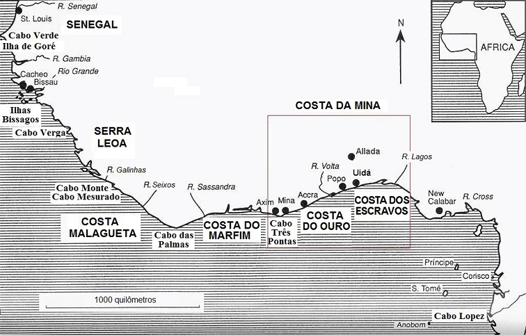 na parte que respeita a denominação de Costa da Mina, havendo por bem V. A. R. de determinar, e fixar os portos que n’aquela Costa devem servir de limite para a compra, e permuta da Escravatura, dignando-se de regular todas as demais circunstâncias necessárias para se poder prosseguir neste tráfico sem risco de se cometerem novos insultos, e confiscos […]. 82